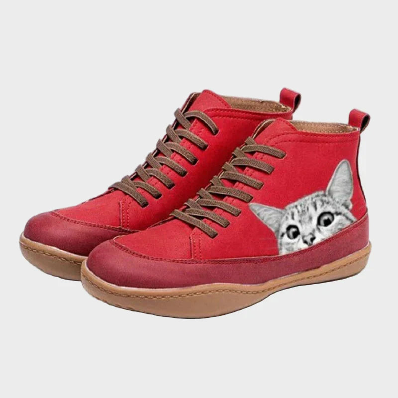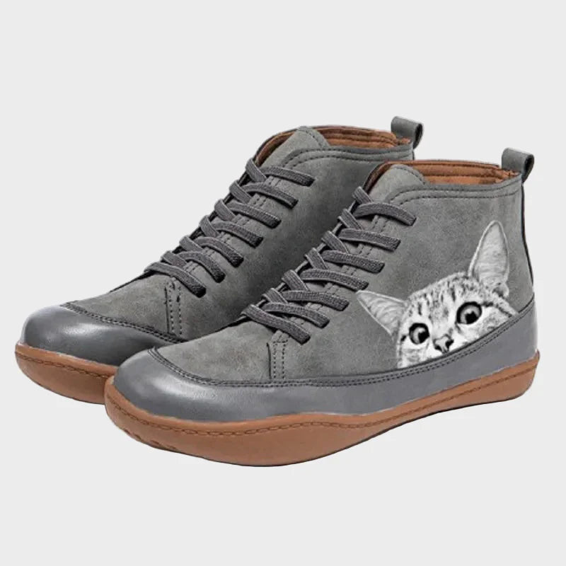 Тези унисекс боти са проектирани да работят за вас — от улицата до офиса. Леки и гъвкави, с противоплъзгаща подметка и омекотена стелка за целодневно носене. Ергономичният силует, подсилените шевове и удобната халка за бързо обуване осигуряват надеждност и бърз онбординг. Артистичният мотив с котка добавя отличимост и превръща всяка стъпка в разговор стартер. Резултат: стил с висока възвръщаемост и комфорт без компромиси.