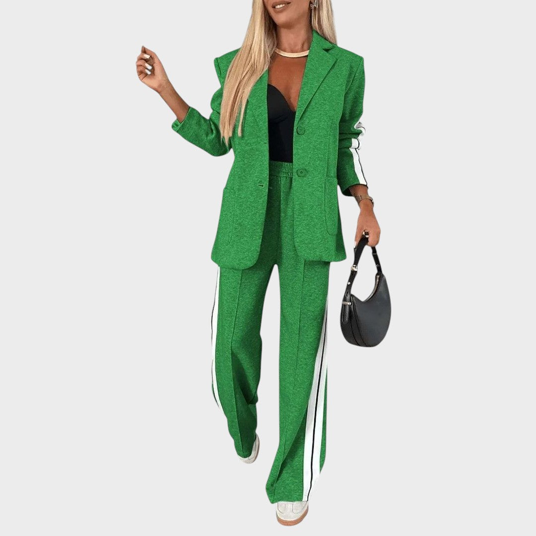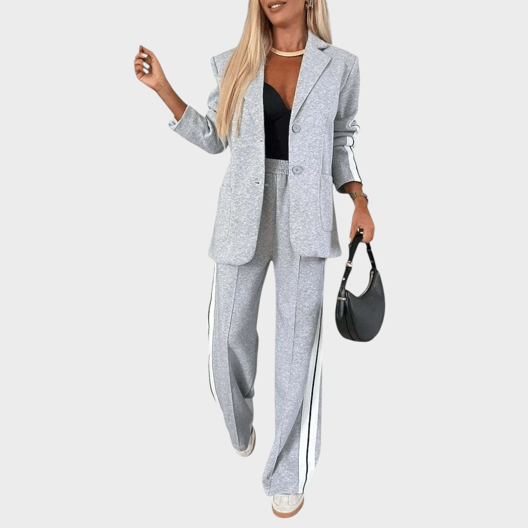 Този комплект съчетава модерна линия с мек, нежен материал, който нежно се грижи за кожата, осигурявайки усещане за ежедневен комфорт. Проектиран да предоставя свобода на движение и лекота, той е перфектен избор за релаксиращи моменти у дома и неформални излизания.